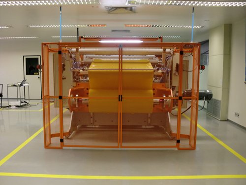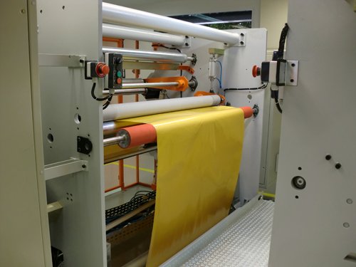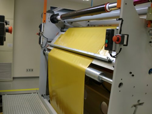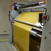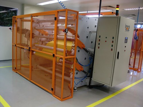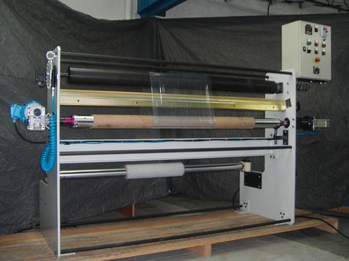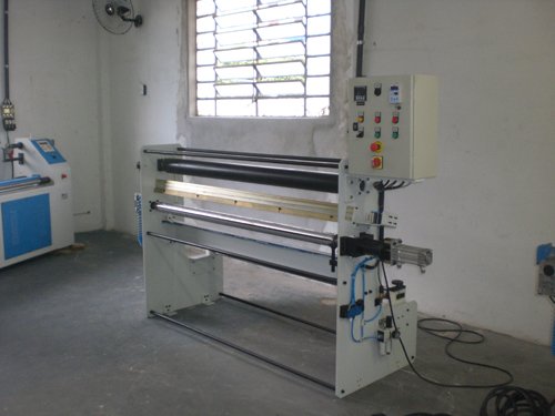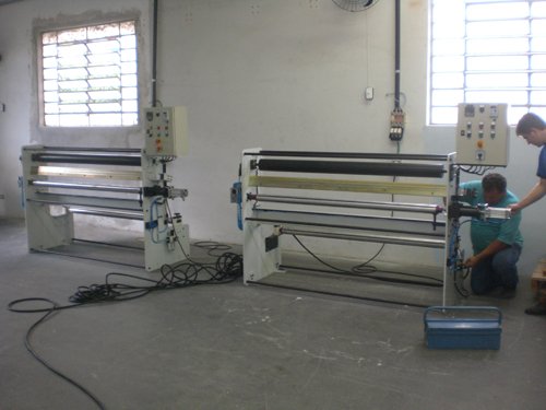 Rebobinadora para rolos (1400mm) para preparo do material sintético a ser cortado no torno de corte.